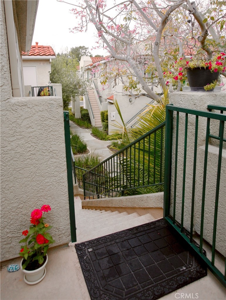 Beautiful upgraded one bedroom one bath upper level condo with open floor plan and vaulted ceiling providing a very spacious feel. Upgraded decor includes granite counters and laminate flooring, newer windows and custom shutters. The kitchen includes stainless steel appliances, light gray shaker style cabinets and a garden window to bring the sunshine in. White shaker cabinets, marble counter and a skylight add to the decor of the bathroom. Your bedroom has two closets and vaulted ceiling. There is a utility closet on the landing at the top of the stairway to the entry door. A full size washer and dryer fit perfectly. Your one car detached garage is on the backside of the building. For quiet relaxation you can place a small patio set on the upper landing surrounded by trees and listen to the birds chirping. Refreshing association pools provide for outdoor activities and you are near miles of hiking trails plus you are minutes away from Laguna Canyon and downtown Laguna Beach with many delicious restaurants, shops, galleries and retail stores.