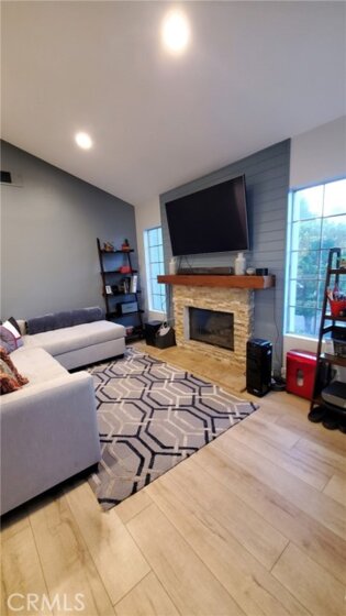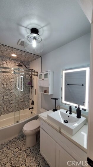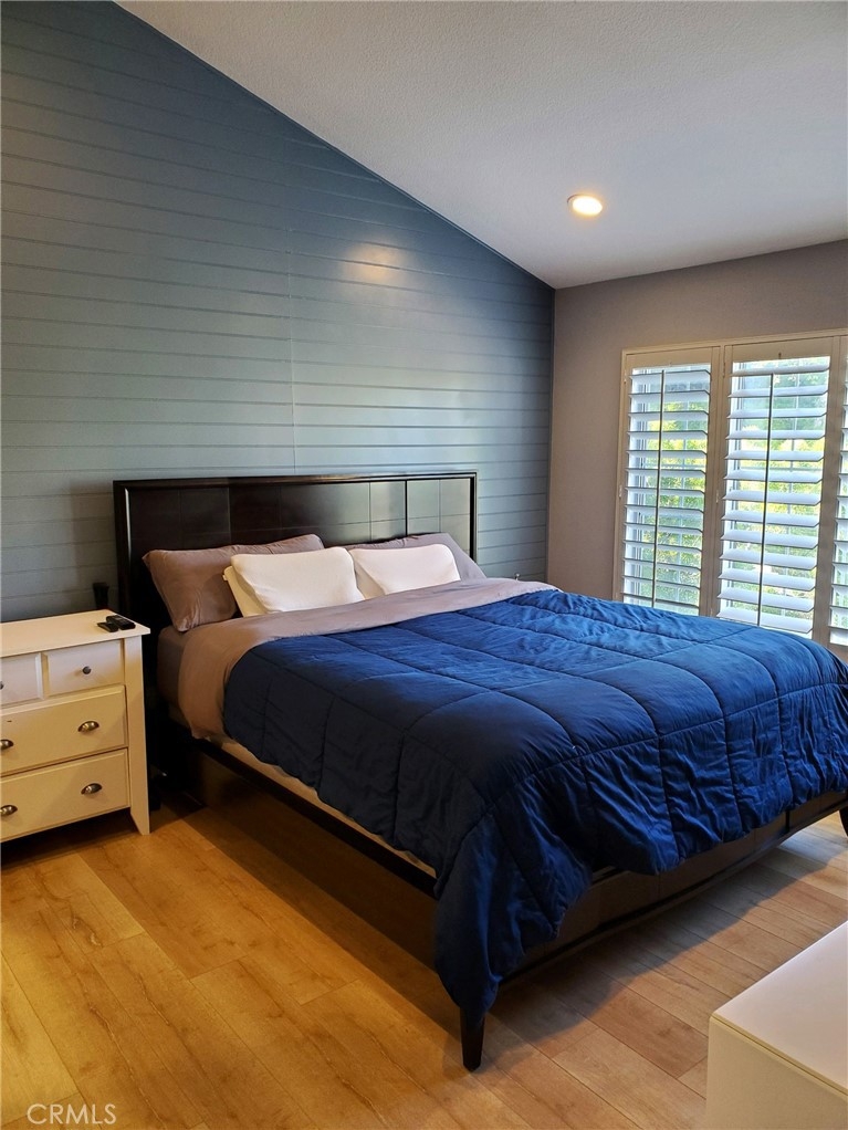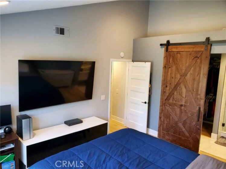 This completely upgraded smart home is tucked away in a quiet hillside community in Aliso Viejo across from a beautiful set of walking trails and a small park with designated pet play areas. Upon entering the unit, you are greeted by a warmly welcoming foyer with direct access to a spacious single car garage. As you ascend the first set of steps on your way to the living area, you will enjoy the view of a gorgeous stone accent wall with warmly lit foot lighting. After reaching the top of the stairs you will be overcome with the openness of the living space, and stunning modern appeal. The kitchen has been completely upgraded with spacious sturdy soft-close white shaker cabinets. This home boasts bright wood-plank tile, black stainless-steel appliances that will appeal to the top-chef in you, while ensuring ease of cleaning. The Brazilian Teak countertop island seats up to 4 comfortably and serves as the perfect focal point of entertainment with a full wine rack built in. As you dine, you have full open view of a cozy living space with upgraded oak mantle above the fireplace that supports ample space for all of your entertainment devices. High vaulted ceilings help create a large open feel, perfectly paired with white plantation shutters that allow an abundance of natural light. A large sliding glass door with white shutters separates the living area from a gorgeous out-side patio with a great view of the surrounding hillside and quiet community. For those working from home, a cozy yet functional small office has been equipped to adequately accommodate single-occupancy workspace with room for up to 2 monitors and sufficient desk space. The completely upgraded guest bedroom has a view of the surrounding hillside. The laundry with its venetian style, has designer tiles from floor to ceiling. The shower/tub combination features steel sliders with curvature to optimize space. As you walk into the master bedroom, your eyes will be drawn immediately to the cape-cod style accent backdrop and the barn-door slider separating the en-suite bath. This room features an enhanced view of the hillside that floods the room with natural light. The expansive wall space has been upgraded to support entertainment of all sorts. The en-suite bathroom features a large walk-in shower with floor-to-ceiling glass and floor to ceiling tile. The toilet is isolated in a private area complete with separate fan control.