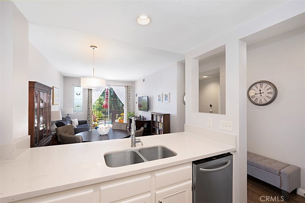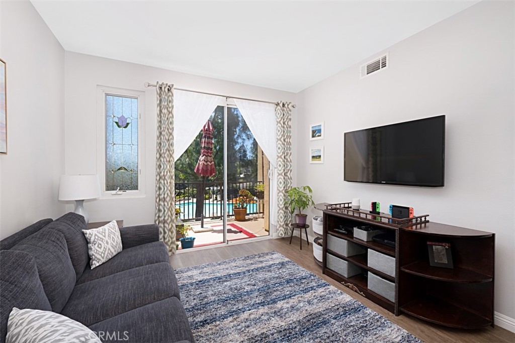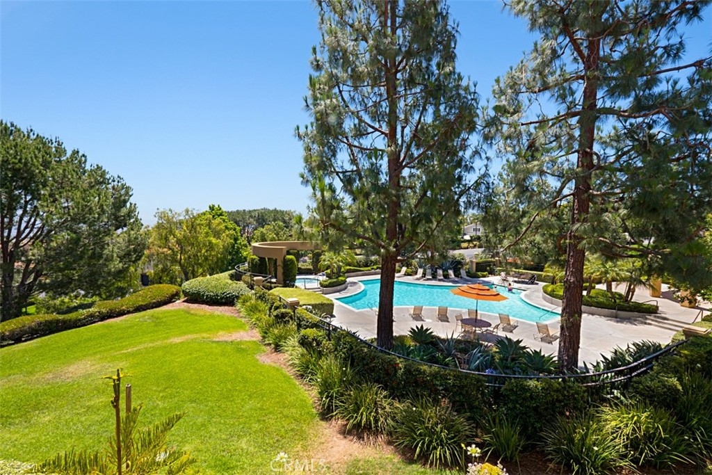Live in beautiful Aliso Viejo with its rolling hills, parks/hiking trails and close proximity to the coastline. This two-bedroom, two bath property featuring impressive views of City Lights and overlooks the beautiful association pool. It is in an excellent location on this low-density property with spacious greenbelts and within walking distance to the newly remodeled Ridgecrest Park. The large kitchen features a Quartz countertop, stainless steel appliances, designer faucet, lots of cabinets, pantry, and recessed lighting. There is also an inside laundry with full unit hookups. The open concept view of the living and dining room is accentuated by the units’ soaring ceilings. The spacious master suite encompasses the master bath with double sinks, large vanity, tub and shower with a designer glass enclosure, linen cabinet, and mirrored closet doors. There is a one car garage plus an additional assigned parking space, CAT5e drop, new A/C and Oh, did I forget to mention the sellers are leaving the refrigerator and washer/dryer for you. Come take a look!
